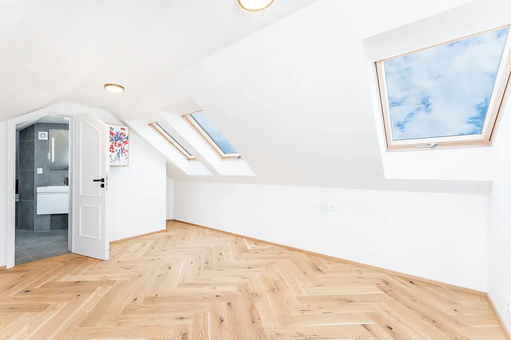 Vstupní úroveň bytu tvoří prostorná hala s technickou místností, obývací pokoj s kuchyňským koutem, koupelna se sprchovým koutem. V horní části se nachází průchozí pokoj vhodný jako pracovna či šatna a dvě oddělené ložnice z čehož jedna disponuje vlastní koupelnou s vanou.