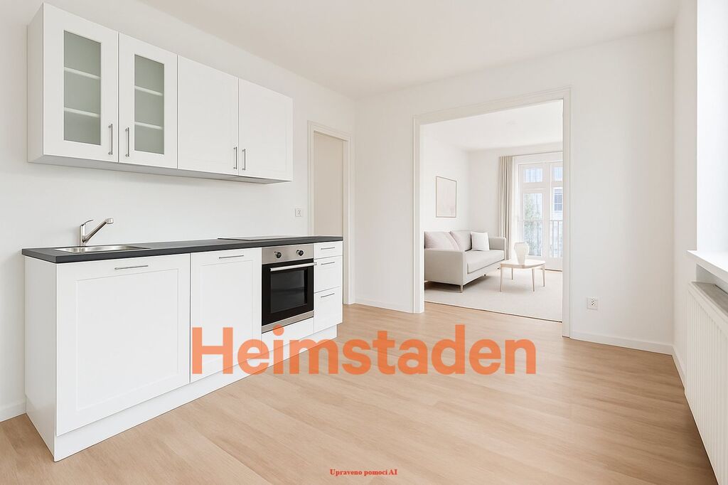 Dispozice bytu je typická pro domy na Porubské ulici – tři podobně velké místnosti nabízejí spoustu možností, jak si prostor zařídit podle vlastních představ. Dominantou je velká kuchyně s novou kuchyňskou linkou a vestavěnými spotřebiči včetně myčky. Díky své velikosti poskytuje dostatek prostoru pro velký jídelní nebo pracovní stůl, ideální pro společné večeře i domácí kancelář.