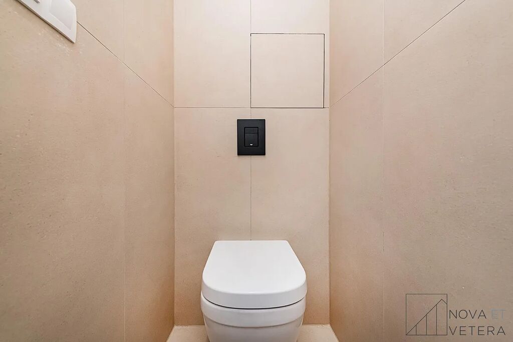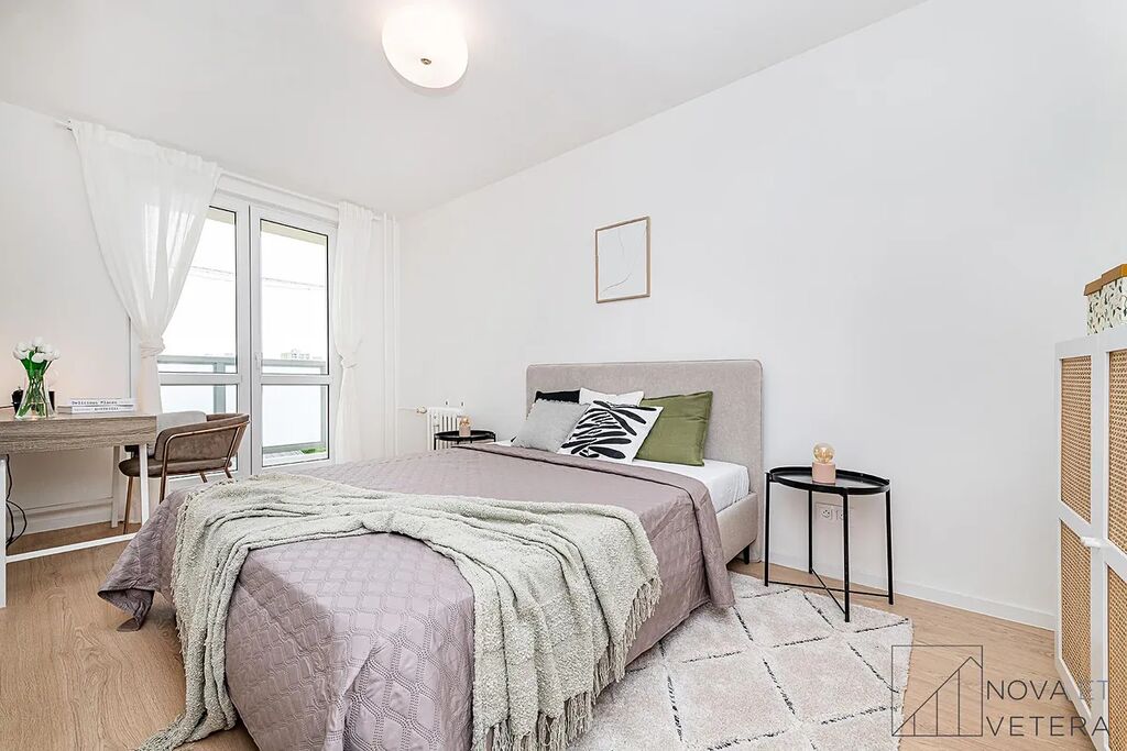 Byt prošel kompletní rekonstrukcí – nové rozvody, podlahy, obklady a koupelna se sprchovým koutem (sanita Grohe). Součástí je nová kuchyňská linka s vestavěnými spotřebiči značky Gorenje (lednice s mrazákem, trouba, varná deska, myčka, digestoř). Dispozici tvoří obývací pokoj s kuchyňským koutem, samostatná ložnice se vstupem na lodžii, prostorná šatna, koupelna a samostatná toaleta. K dispozici je také technická místnost s přípojkou na pračku.