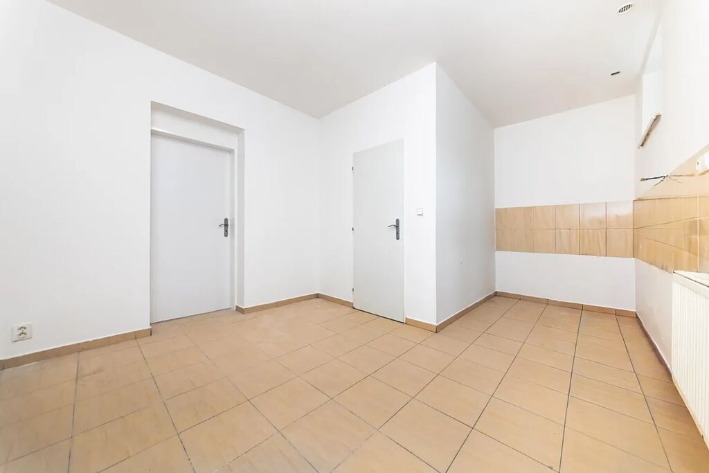 Srdcem bytu je prostorná a světlá obytná místnost s moderním kuchyňským koutem, která přirozeně propojuje prostor pro vaření, stolování i odpočinek. Z ní je přístup do druhého pokoje, který lze využít jako ložnici či pracovnu. Koupelna s toaletou působí čistě a funkčně.