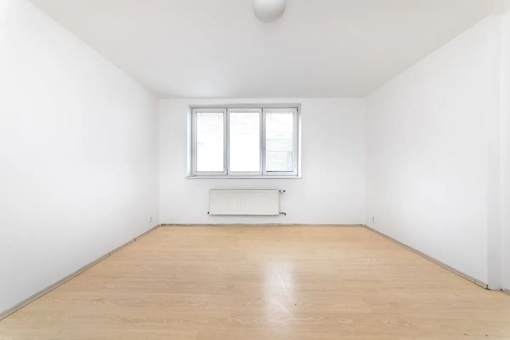Srdcem bytu je prostorná a světlá obytná místnost s moderním kuchyňským koutem, která přirozeně propojuje prostor pro vaření, stolování i odpočinek. Z ní je přístup do druhého pokoje, který lze využít jako ložnici či pracovnu. Koupelna s toaletou působí čistě a funkčně, komora pak poskytuje ideální zázemí pro skladování potravin nebo domácích potřeb.