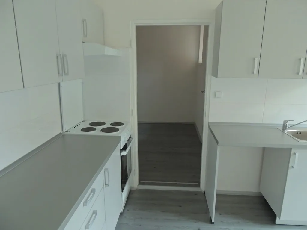 Kuchyňská linka je opatřena elektrickým sporákem a elektrickou troubou a s možností připojení pračky. Lokalita s dostatkem zeleně a parkovací plochy.