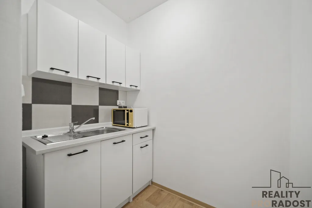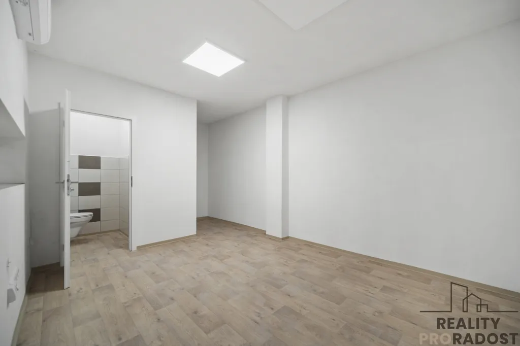 Součástí je zázemí s kuchyňkou, samostatným WC a menší místností pro kancelář nebo odpočinek.