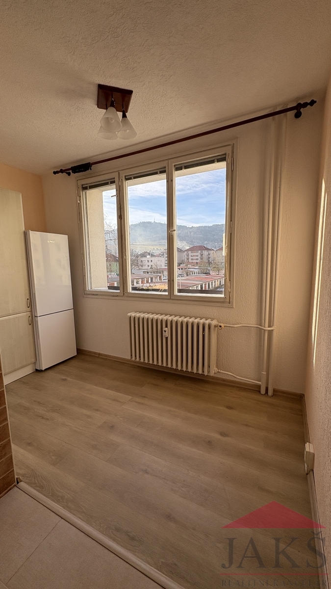 Popis: předsíň (botník s věšákem, šatní skříň), sam. WC s umyvadlem, kuchyň (kuch. linka s HV troubou, digestoří, spíží, lednicí s mrazákem a prostorem pro myčku či pračku), koupelna (vana, umyv. se zrcadlem a skříňkou, vývody na pračka), obývací pokoj (koberec) se vstupem na prostornou lodžií a ložnice (dětská postel).
