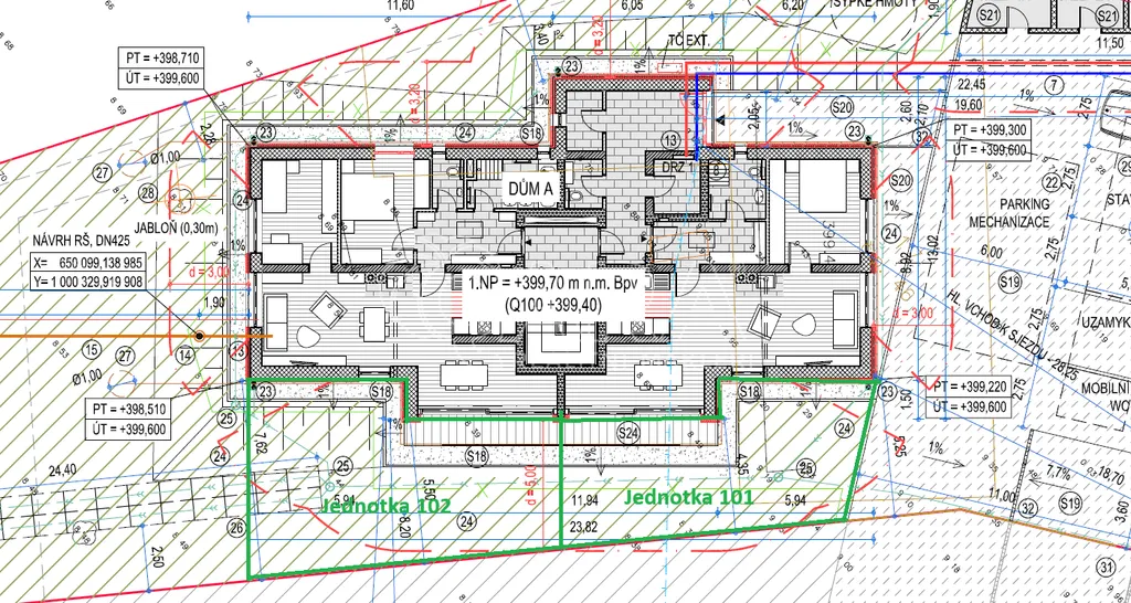 Součástí ceny bytu je parkovací stání a venkovní sklepní kóje umístěná u parkovacích stání.