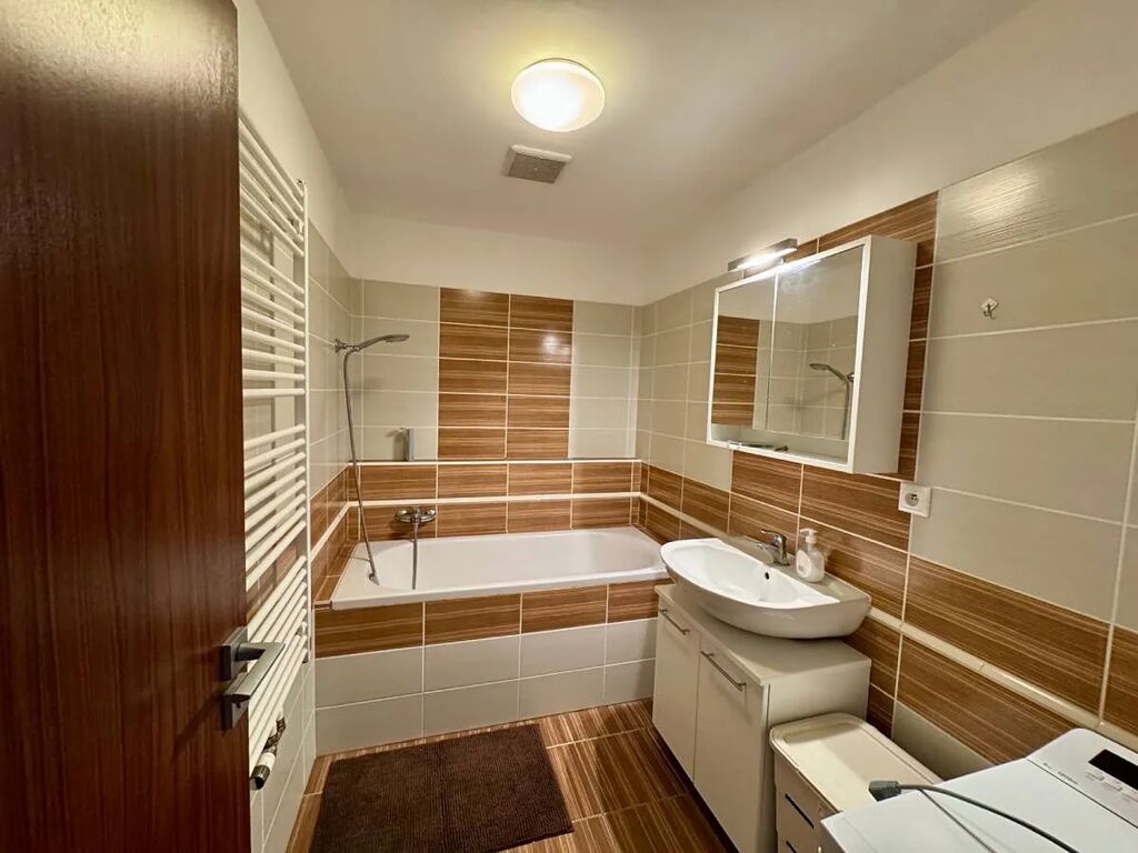 Exkluzivně vám nabízíme k pronájmu slunný byt 2+kk s jižní orientací, 79 m2 z toho byt 57,75 m2 a rohová terasa 21,94 m2 s krásným výhledem v cihlovém domě s garážovým stáním na čip, 5 minut chůze do centra i na autobusové a vlakové nádraží. Byt se nachází v 5.patře s výtahem. Součástí bytu je koupelna s vanou 4,8m2, samostatné WC, podlahová krytina- dlažba. Obývací pokoj 27m2 s kuchyňským koutem, ložnice 19 m2, podlahová krytina- plovoucí podlaha. V celém bytě jsou dýhované dveře do obložkových zárubní. Internetové připojení, IP telefon. Vytápění kvalitní kotle ve vlastní domovní kotelně, bytový regulátor teploty s týdením programem pro celý byt, centrální příprava teplé užitkové vody – předehřev solárními panely předpoklad úspory až 50%. Dům je zateplen fasádním zateplovacím systémem 180 mm stabilizovaného polystyrenu.