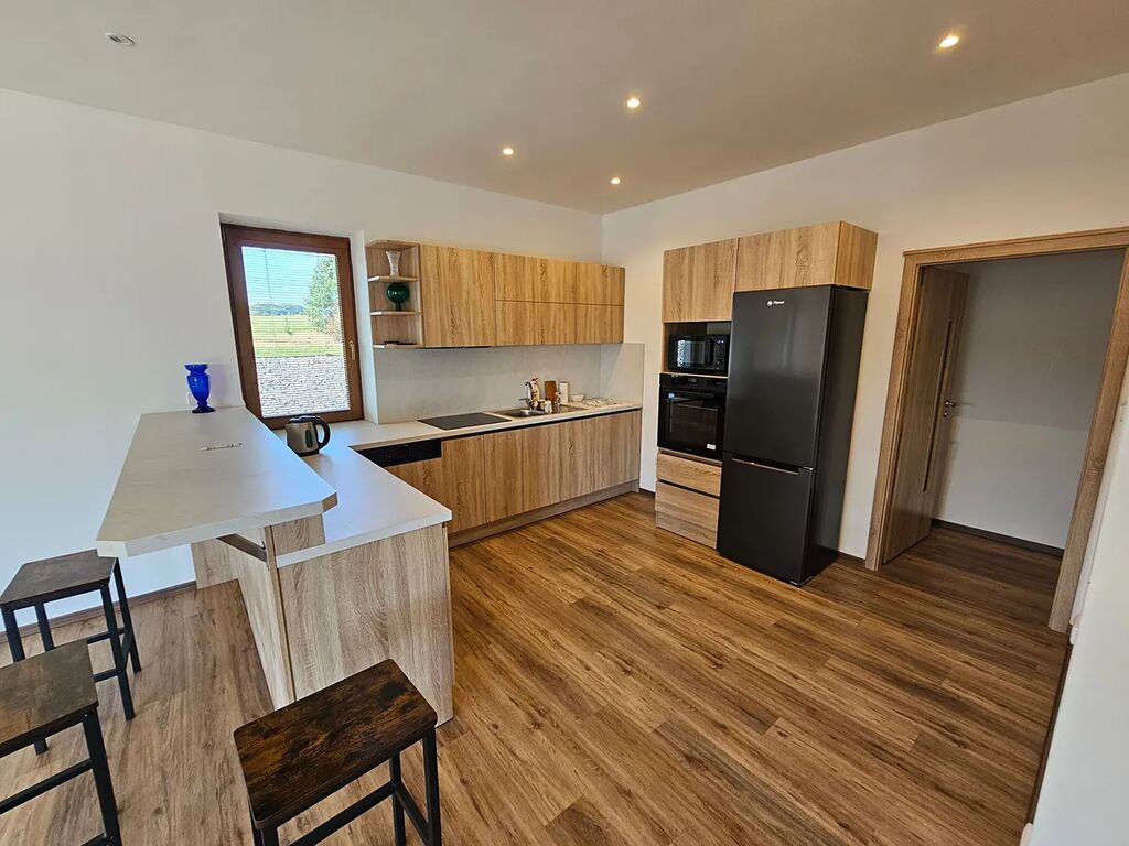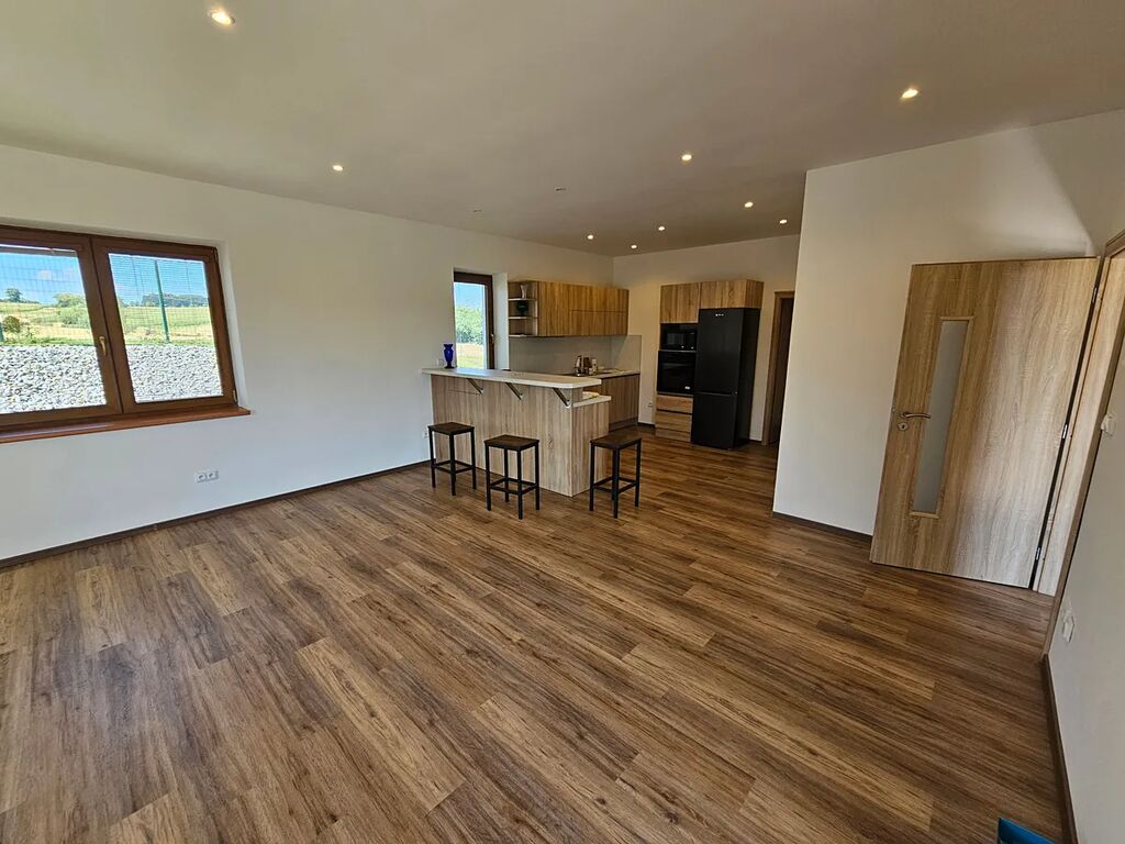 Sháníte krásné moderní a reprezentativní bydlení? K tomu navíc pohodlí města a ještě navíc klid a přírodu venkova? Tak v tomto případě mám pro vás nabídku zcela nového domu, domu ve kterém ještě nikdo nebydlel a to v Havlíčkově Brodě, ul. Reynkova. Jedná se o zděnou přízemní stavbu s obytnou plochou 145 m2, na kterou navazuje velká terasa o výměře 30 m2. Dispozičně se jedná o 4+kk, tedy po vchodu do vstupní chodby zde nalezneme 2 pokoje, ložnici s vlastní koupelničkou WC, dále obývací pokoj s kuchyní , koupelnu vybavenou rohovou vanou, též sprchovým koutem, samostatné WC, šatna a na závěr technickou velkou místnost ( s možností i dalšího využití), jejíž zpřístupnění je z domu, ale také přímo se zahrady o rozloze 950 m2. Pozemek je oplocen, má vjezd opatřený bránou na dálkové ovládání a zadní branku pro útěky do přírody. Na něm dále stojí zahradní domek a v přední části je umístěné zarybněné jezírko s lekníny. Nemovitost je napojena na elektřinu, voda je vlastní z vrtané studny, odpady jsou svedeny do jímky. Plyn zde není zaveden a není ho třeba, neboť vytápění (podlaha voda) a ohřev vody (bojler 300l) zajišťuje kvalitní tepelné čerpadlo. Dům je volný, připravený k nastěhování a čeká na dobrého nájemce, třeba i s domácím mazlíčkem. Nájemné za nemovitost a měsíc činí 30.000, Kč + služby (cca 5 tis.), vratná kauce 50 tis. a odměna RK 20.000, Kč. Pronájem je snadno uplatnitelný jako náklad do účetnictví. Volejte pro informace, či sjednání termínu prohlídky.