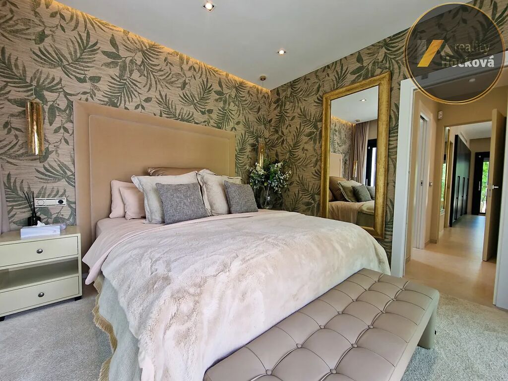 Uvnitř nabízí otevřený a světlý prostor pět prostorných ložnic a šest koupelen, navržených pro pohodlí i styl. Interiéry jsou vybaveny prémiovým nábytkem a dekoracemi od prestižních značek, jako jsou Eichholtz, Cattelan Italia a Kettal, kombinující nadčasovou eleganci s moderní sofistikovaností.