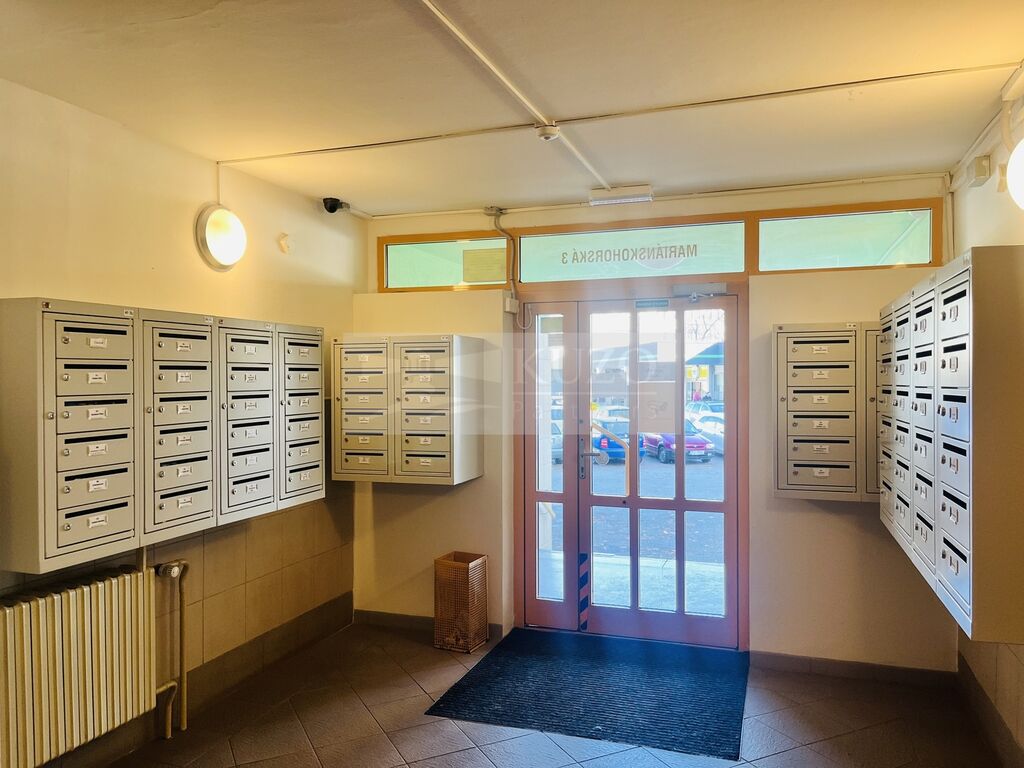 K dispozici je také sklep o ploše 2 m², který je užitečný pro dodatečné úložné prostory. Dům je vybaven dvěmi novými výtahy. Vytápění bytu je zajištěno radiátory.