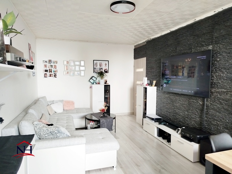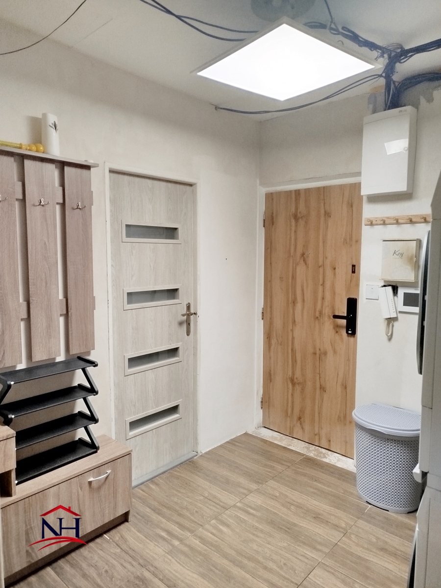 V bytě jsou kvalitní podlahy, ve kterých dominují dlažba a hypoalergenní koberec, což ocení zejména majitelé dětí. Kuchyň a chodba jsou řešeny prakticky a moderně, poskytují dostatek prostoru pro uskladnění a pohyb. V obývacím pokoji se nachází elegantní keramický obklad, jenž dodává celému prostoru na útulnosti a stylu.