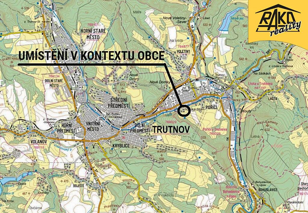 Pozemek je velmi příhodně umístěn jen 2 kilometry od budoucího nájezdu na dálnici D11, která spojí Trutnov s Hradcem Králové, Prahou a Polskem. Do centra města Trutnova se odtud dostanete za 8 minut autem nebo lze využít zastávku MHD umístěnou jen 400 m od pozemku. Do největšího skiareálu v ČR je to přibližně 20 minut autem.
