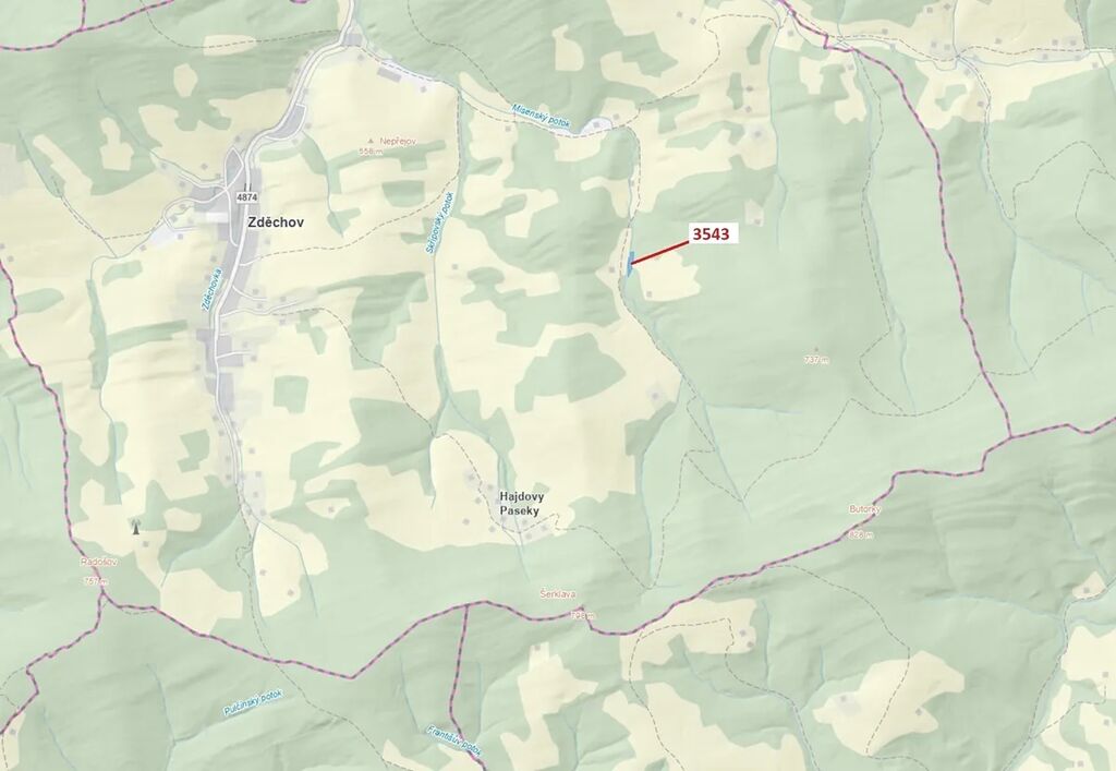 Lesní pozemek o výměře 1866 m2, parcelní číslo 3543, podíl 1/1, katastrální území Zděchov, obec Zděchov, obec s rozšířenou působností Vsetín, okres Vsetín, Zlínský kraj.