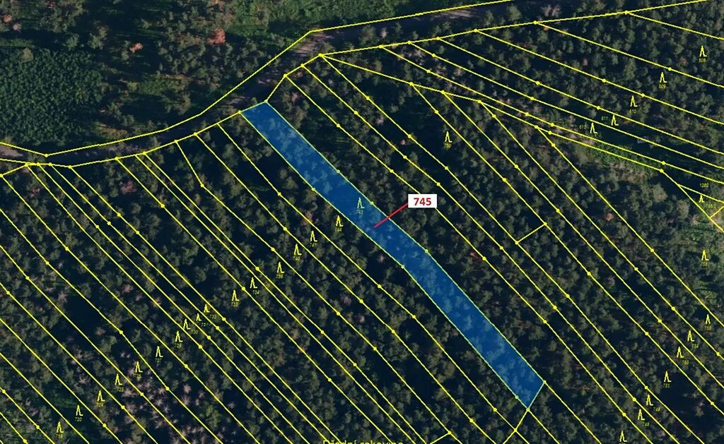Lesní pozemek o výměře 1957 m2, parcelní číslo 745, podíl 1/1, katastrální území Dolní Vilémovice, obec Dolní Vilémovice, obec s rozšířenou působností Třebíč, okres Třebíč, Kraj Vysočina. Po těžbě.