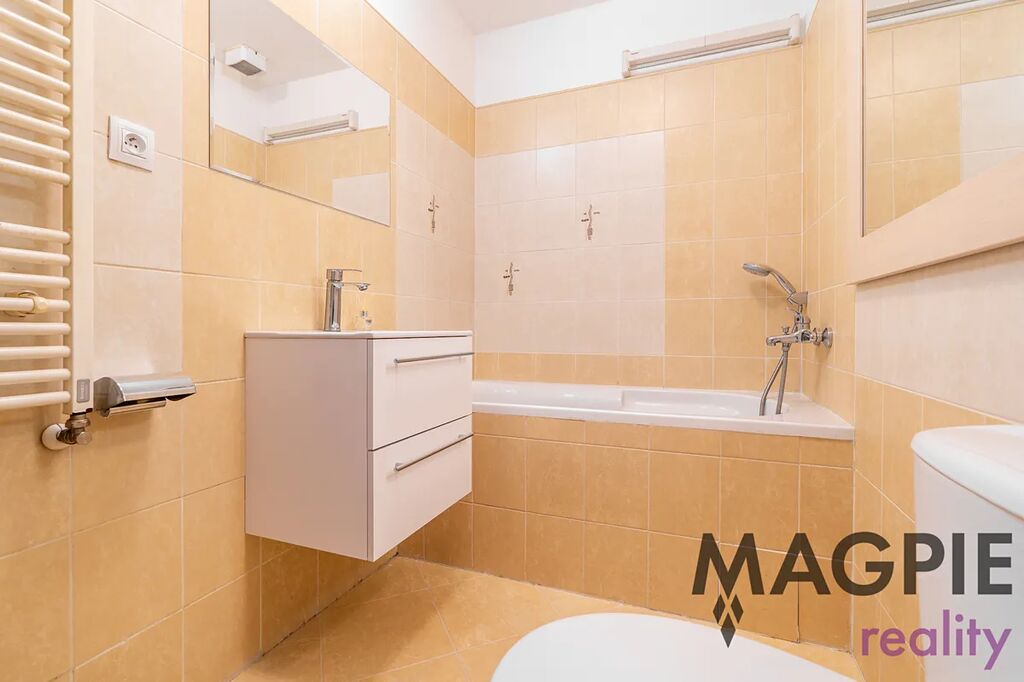 Byt sestává ze zádveří s praktickým prostorem pro vestavěné skříně (5,6 m2). Ze zádveří vstupujeme do koupelny s WC (4,02 m2) a obou obytných místností. Obývací pokoj (16,26 m2) je vybaven funkční kuchyní se spotřebiči a nabízí vstup na zahradu skrz velká francouzská okna. Druhou obytnou místností je ložnice (11,8m 2) rovněž s francouzskými okny a dalším vstupem na zahradu. Právě zahrada je velkou přidanou hodnotou nabízeného bytu. Plocha 85 m2 nabízí široké možnosti využití pro děti, domácí mazlíčky, zahrádkáře a dokonalý prostor pro relaxaci. Díky oplocení a okolní výstavbě nabízí nebývalé soukromí.