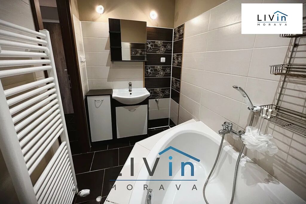 Vytápění je řešeno ústředním dálkovodem, ohřev teplé vody zajišťuje elektrický bojler umístěný na chodbě (skrytý ve skříni).