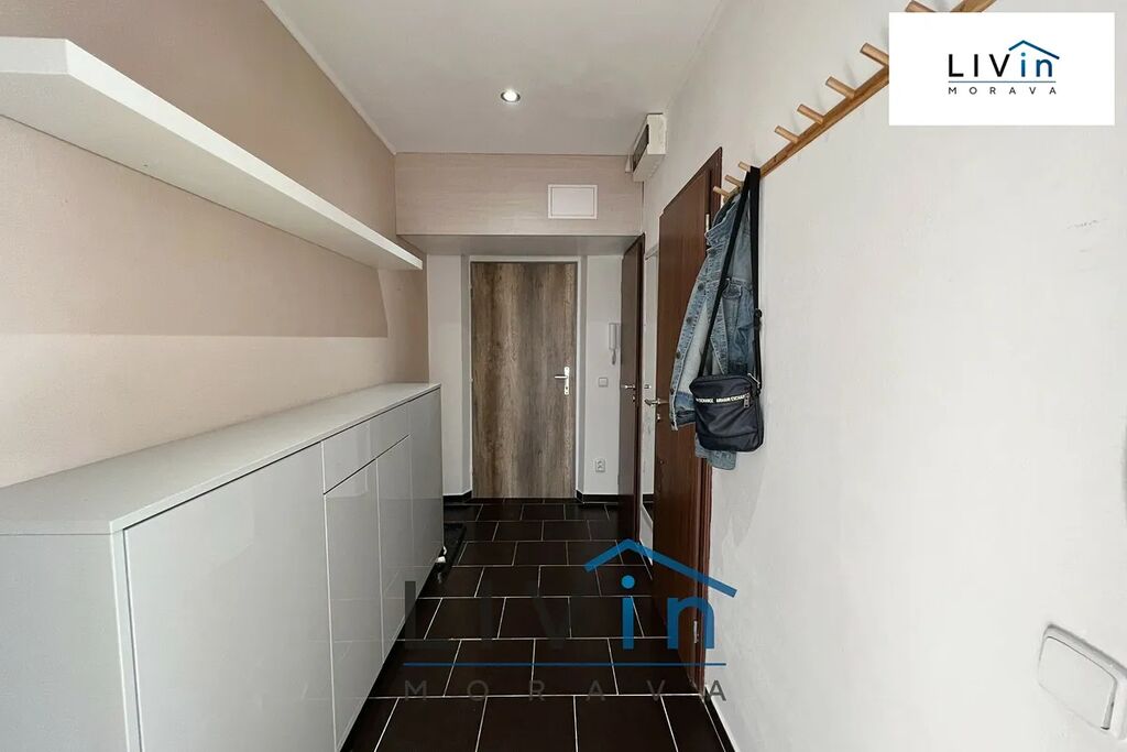 Byt se prodává jako částečně vybavený. Kuchyň zahrnuje linku s vestavnými spotřebiči: myčku nádobí, horkovzdušnou troubu, sklokeramickou varnou desku, digestoř a lednici s mrazákem. V koupelně je rohová vana, umyvadlo a místo pro pračku. Obývací pokoj je vybaven závěsnou komodou a TV stolkem, v chodbě se nachází závěsná komoda/botník. Ložnice nabízí vestavnou skříň přes celou stěnu s velkým úložným prostorem a v dětském pokoji jsou závěsné police.