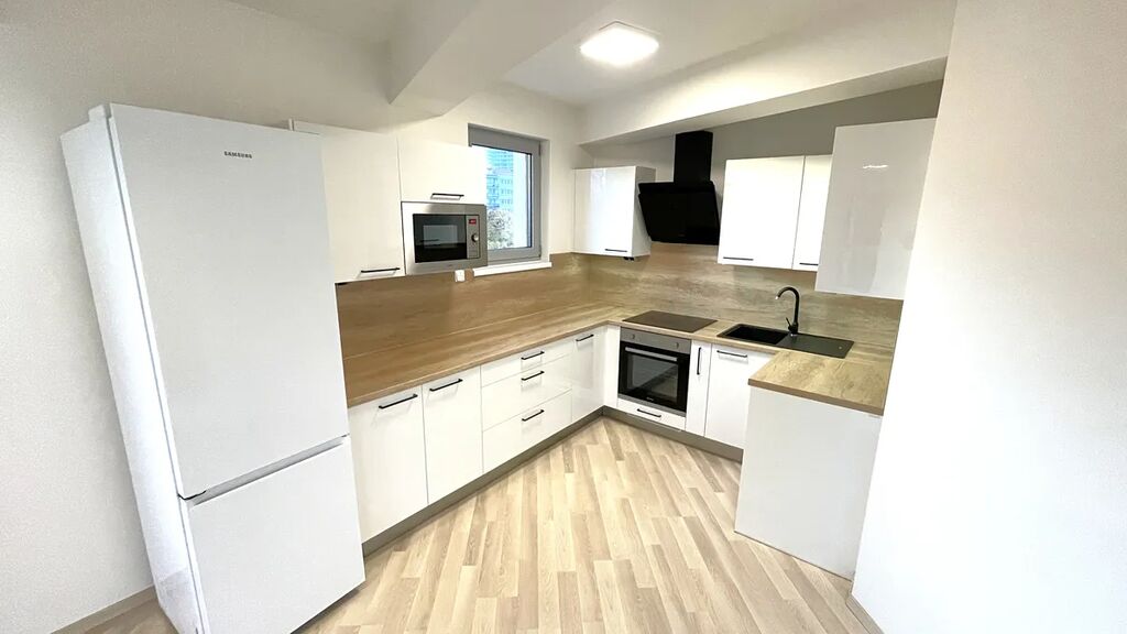 Exkluzivní nabídka majitele k pronájmu moderní bytové jednotky 3+kk, s možností parkovacího stání v objektu (1.PP), umístěné v 4.NP (3. patro s výtahem) novostavby polyfunkčního objektu, ul. Pacovská, Praha 4 – Krč. Celková výměra 96,12 m2. Byt částečně vybaven a zařízen (dle přiložené fotodokumentace), moderní kuch. linka ORESI s vestavěnými spotřebiči (el. trouba CANDY, sklokeramická varná deska CANDY, digestoř CANDY, myčka ELEKTROLUX, mikrovlnná trouba MORA), samostatná chladnička s mrazákem zn. Samsung. 2x WC, koupelna s vanou, s přípravou na pračku. Plovoucí podlahy, dlažba, osvětlení, elektrické žaluzie v oknech, bezpečnostní vstupní dveře SAPELI. Domácí tel. + vrátný, internet + kabel TV (hrazen zvlášť). Vstup do objektu na bezpečnostní čipy. Ihned k dispozici. PENB C. V místě plná občanská vybavenost, poblíž „M“ Pankrác a Budějovická. Bezbariérový přístup.