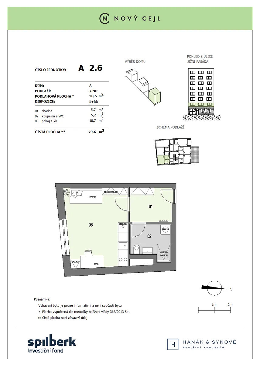 K dlouhodobému pronájmu Vám nabízíme nový, krásný, světlý, moderní ateliér 1+kk v osobním vlastnictví v novostavbě bytového domu na ulici Cejl, Brno. Ateliér o ploše 30,4 m2 je umístěn ve 2.NP cihlového domu s výtahem a je orientován na jih. K ateliéru je možné za příplatek pronajmout parkovací stání.