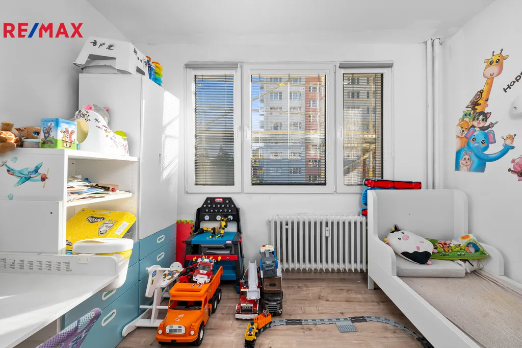 Bytová jednotka o ploše 65 m2 je šikovně dispozičně rozdělena na dvě ložnice, obývací pokoj s novým balkonem, kuchyni, koupelnu se sprchovým koutem a toaletou a prostornou předsíň. Byt i bytový dům právě prošly rekonstrukcí a revitalizací. Byt je osazen novými plastovými okny se žaluziemi i sítěmi, zabezpečen protihlukovými, protipožárními dveřmi, má novou vyzděnou koupelnu s WC, po celé podlahové ploše (vyjma koupelny) je položena plovoucí podlaha a byly udělány nové rozvody elektřiny v mědi. Nabízený byt je udržovaný a působí příjemným dojmem. K bytu navíc náleží sklepní kóje a možnost užívání přilehlé garáže. V rámci revitalizace domu bylo provedeno zateplení fasády a sklepních prostor, výměna oken i ve společných prostorách domu a osazení nových balkonů.