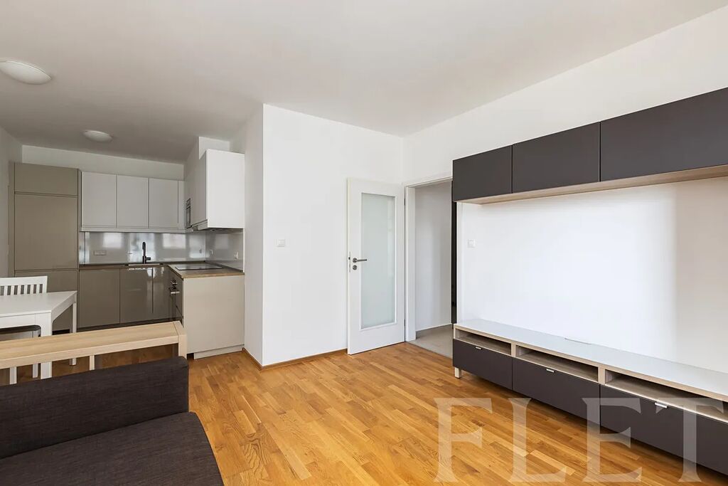 Interiér bytu zaujme prostorným obývacím pokojem s kuchyňským koutem, vybaveným moderní linkou se spotřebiči a dostatkem pracovního i úložného prostoru. Byt je kompletně zařízen vkusným nábytkem a připraven k okamžitému nastěhování – stačí si přinést osobní věci a můžete bydlet. Ložnice působí útulně a klidně, obývací část nabízí pohodlné posezení i prostor pro odpočinek, a z balkonu s venkovním sezením si můžete vychutnat výhled do okolní zeleně. Koupelna je elegantní a prakticky řešená – s vanou, umyvadlem, toaletou a pračkou.