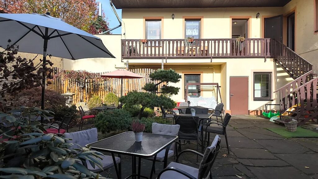 Hlavní budova - 2 hotelové byty, 5 dvoulůžkových pokojů s vlastní sociálkou