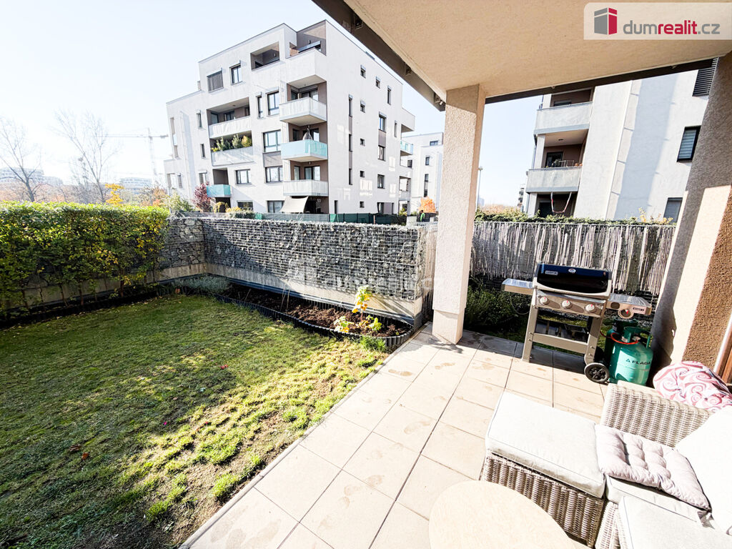 Nabízíme k pronájmu světlý a prostorný byt 3+kk o velikosti 80 m² s terasou 10,5 m² a s předzahrádkou 71 m², umístěný v 1. nadzemním podlaží moderní novostavby v ulici Saarinenova, Praha 9 – Hloubětín.