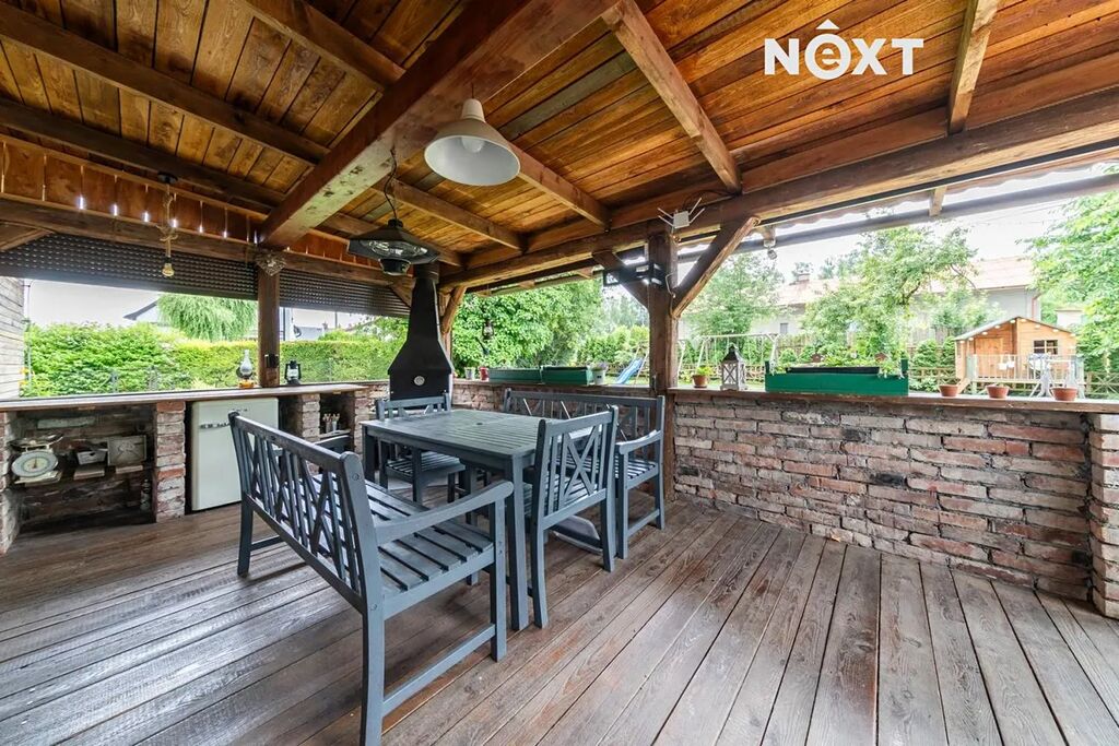 Venku ještě zůstaneme. Před domem je plocha určená k parkování pro minimálně dvě auta. Za plotem pak zahrada, bazén, keře a stromy, to vše tvoří místo pro odpočinek a soukromí. Nejen pro vás, ale i pro vaše děti to bude místo, které si zamilujete. Terasa s grilem a posezením, která se dá celá uzavřít venkovními roletami, to je místo, které oceníte v létě maximálně. Osvěžit se v bazénu, pak si natočit ,,jedno chlazené" a něco ugrilovat. Zní to dobře, co říkáte? Pozemek je navíc v ideální velikosti pro údržbu. Celý tento prostor je pro váš klid monitorován kamerovým systémem.