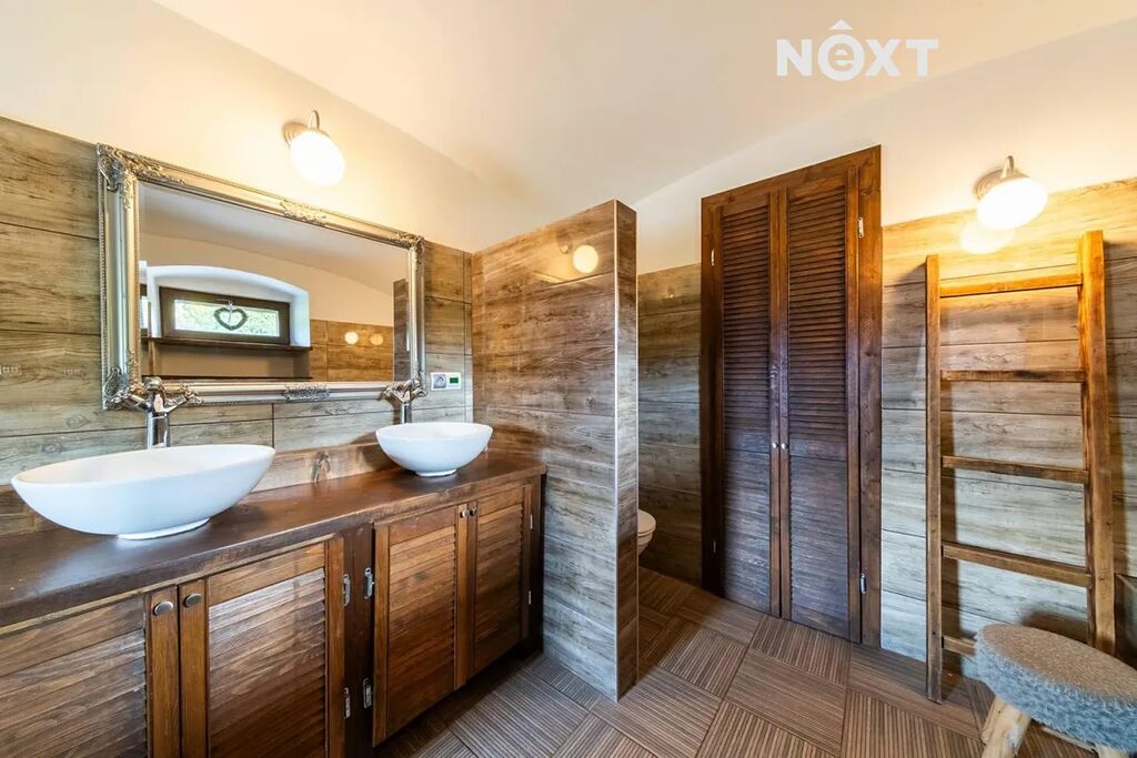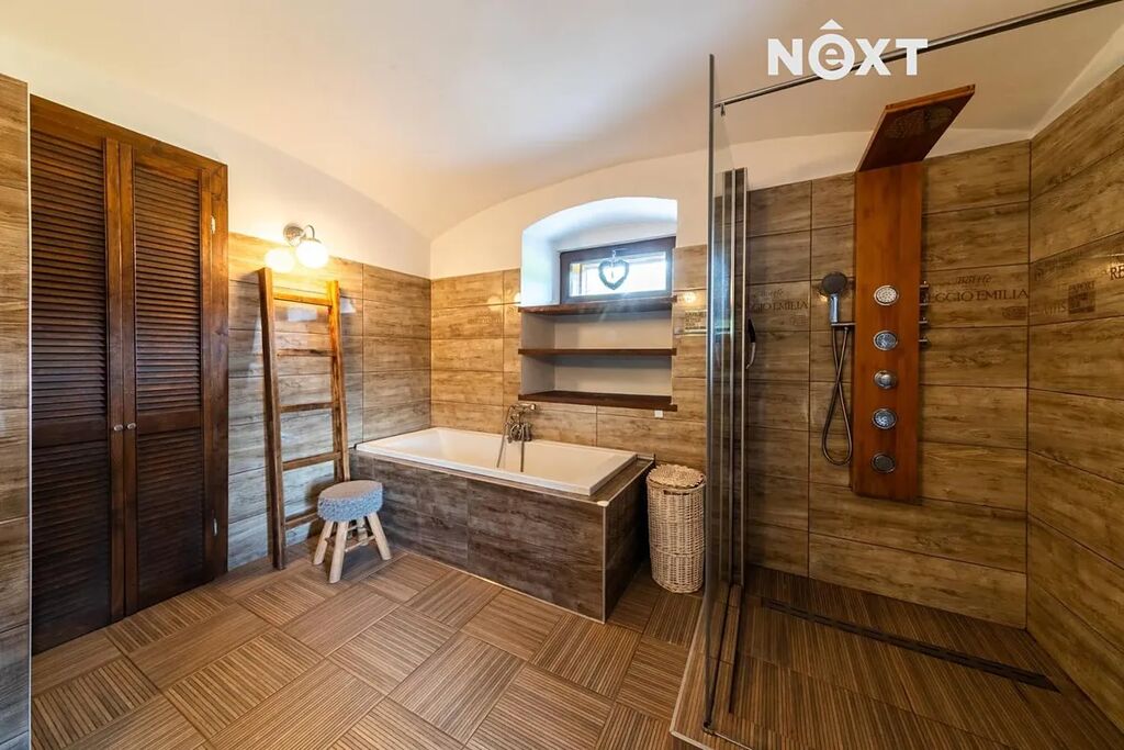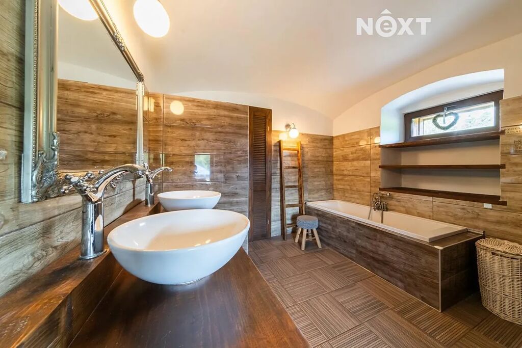 Pokud se jeden z členů vaši rodiny bude chtít realizovat v oblasti podnikání, ideálním místem je přístavek z přední části domu. Nebo tam vytvořte party místnost. Chcete obojí? Dům z velké části podsklepený, prostoru máte dostatek. Opět zde najdete klenbové stropy a obklopí vás cihlový interiér. I toto místo se může po úpravě oněch cihlových stěn stát místem pro váš odpočinek. Co tak vinný sklípek?