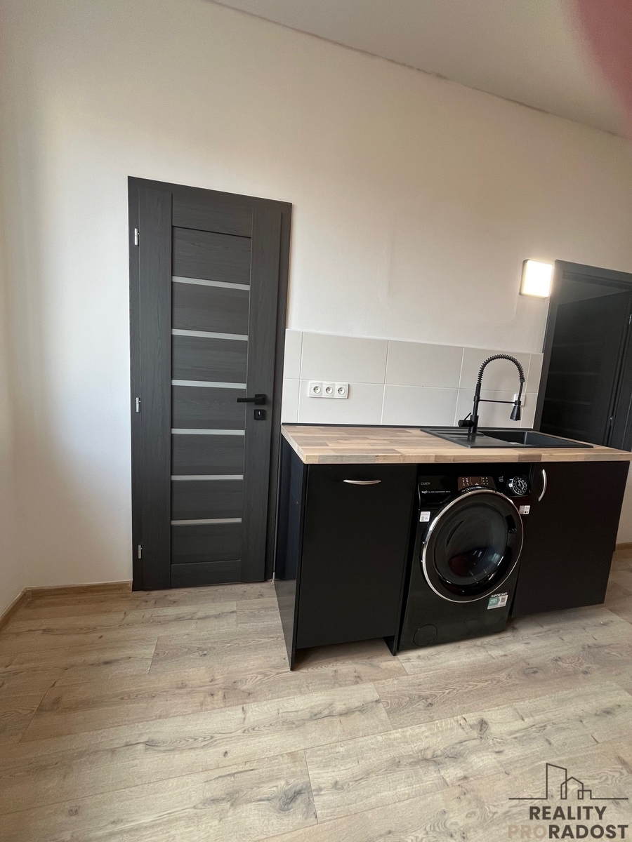 Byt po kompletní rekonstrukci – nové rozvody, podlahy, dveře, obložky, kuchyňská linka vybavená spotřebiči (sporák, trouba, lednice, myčka, pračka, digestoř), komora, koupelna a WC, nová plastová okna. Dispozici tvoří dvě místnosti a samostatná kuchyň, prostorná chodba, koupelna se sprchovým koutem a samostatné WC.