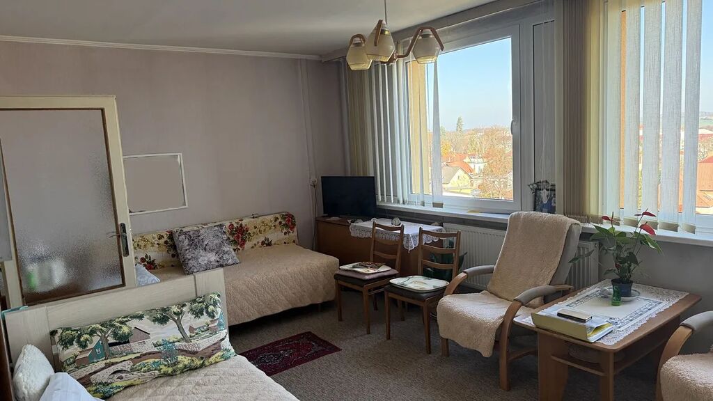 Nabízíme k prodeji byt 1+1 o výměře 40m2 v klidné části v Českém Brodě, Palackého ulice, který se nachází v 7. patře domu, který má novou fasádu, zateplení, nový výtah, nové stoupačky. Byt je v původním zachovalém stavu s umakartovým jádrem, má oddělené WC a koupelnu, v koupelně je sprchový kout, umyvadlo a pračka. v chodbě je vestavěná skříň, v kuchyni je plynový sporák, kuch. linka a také praktická komora (špajz). Na podlahách jsou koberce a po nimi lino. V bytě jsou plastová okna, ze kterých je krásný výhled na celý Český Brod. K bytu náleží drátěná sklepní koje v suterénu domu.