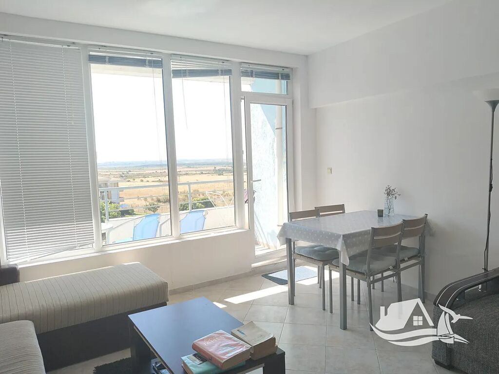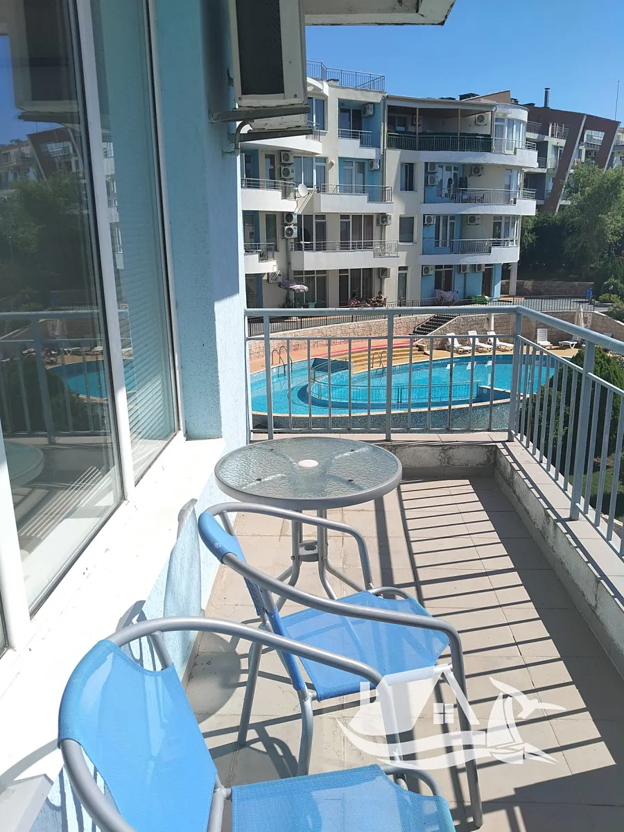 Prodávám kompletně zařízený dvoupokojový apartmán o celkové ploše 66,77 m², který se nachází ve 2. podlaží (nikoli v posledním) uzavřeného komplexu Sunset Kosharitsa v obci Košariца, přibližně 6 km od pláže Slunečního pobřeží.