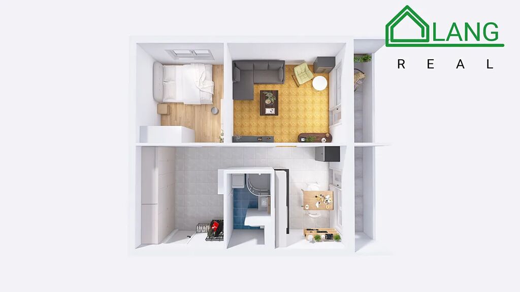 Interiér bytu tvoří velkorysý obývací prostor s dřevěným obložením a přímým přístupem na první balkón, praktická kuchyně s druhým balkónem, útulná ložnice, koupelna se sprchou a WC a veliká vstupní chodba s bohatými možnostmi úložiště. Obě lodžie poskytují nádherný výhled na okolní zeleň i městskou siluetu – ideální místo pro relaxaci.