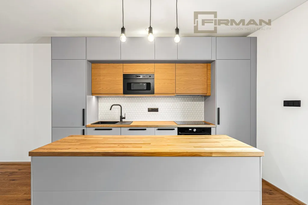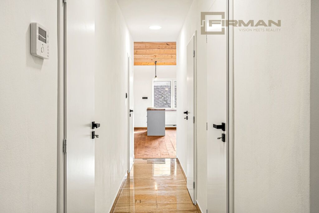 Spodní byt o dispozici 2kk + pracovna je proveden s použitím stejných materiálů, je zde také nová, moderní kuchyně a stejně jako u horního bytu byl i zde kladen důraz na kvalitní zpracování a především na vytvoření příjemné atmosféry, abyste se zde od prvního okamžiku cítili doma.