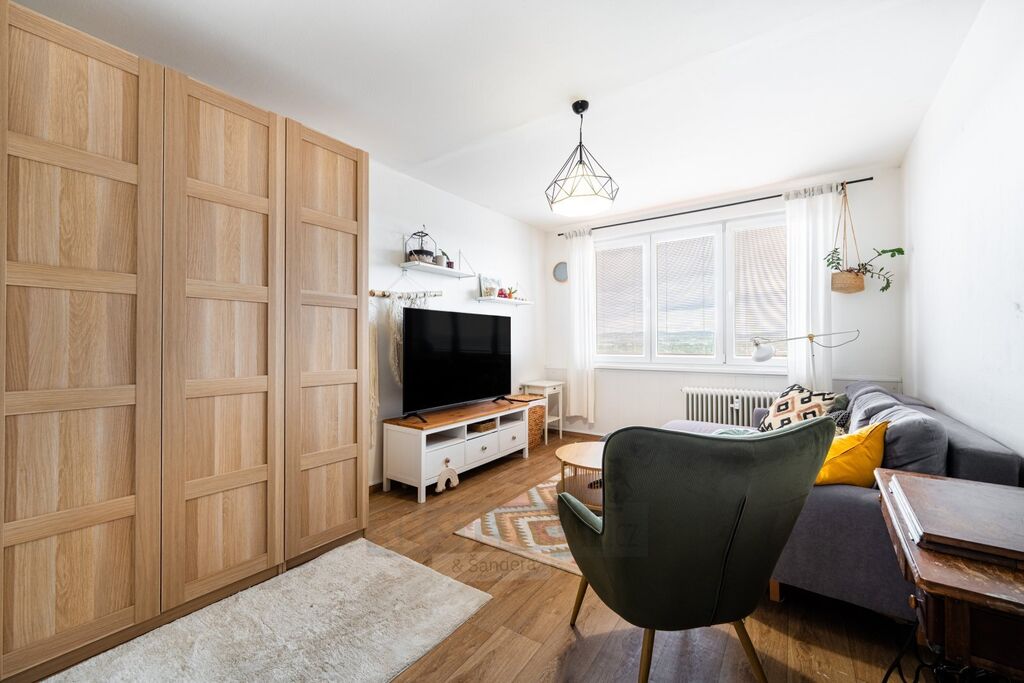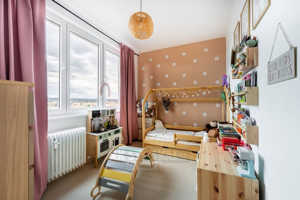 Hned při vstupu vás přivítá prostorná předsíň s vestavěnými skříněmi, které elegantně vyřeší úložný prostor pro šaty i obuv. Praktickým bonusem je samostatná komora ideální pro uskladnění sezónních věcí. Z chodby se dostanete přímo do světlého obývacího pokoje, který svou velikostí nabízí dostatek místa pro odpočinek celé rodiny. Kuchyňská část je řešena velmi prakticky – prostor je uspořádán do tvaru písmene L, díky čemuž zde našlo místo jak moderní kuchyňské zázemí vybavené všemi spotřebiči (myčka, trouba, sklokeramická deska, lednice), tak i útulný jídelní kout pro společné stolování. Kompletně zrekonstruovaná koupelna je připravena na připojení pračky i sušičky a oceníte také samostatnou toaletu. Za jídelnou se nachází útulný dětský pokoj s měkkým kobercem, zatímco prostorná ložnice s dostatkem úložného prostoru nabízí vstup na balkon, odkud se vám otevře krásný výhled na centrum Českých Budějovic. K bytu navíc patří sklep, kde pohodlně uskladníte sportovní či sezónní vybavení. Byt je momentálně kompletně vybaven nábytkem, přičemž při předání bytu bude vyklizen dětský pokoj.