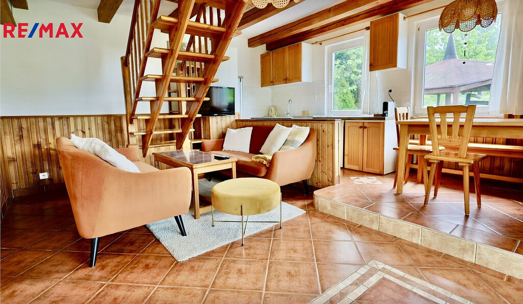 Útulný domeček o jednom podlaží + podkroví má zastavěnou plochu 53 m², využitelná podlahová je 90 m², velikost 4+kk.