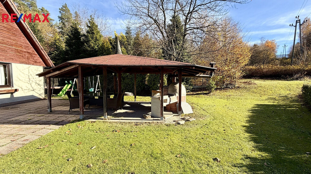 I když je domeček součástí většího pozemku, na němž se nachází i dům majitele, bude mít nájemce dostatek soukromí pro své bydlení. K dispozici bude mít zahradu o výměře cca 800 m², zastřešenou pergolu s grilem a sezením, až 3 parkovací místa na parkovišti před domem. Vjezd po společné příjezdové cestě, brána na dálkové ovládání.