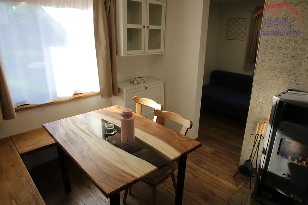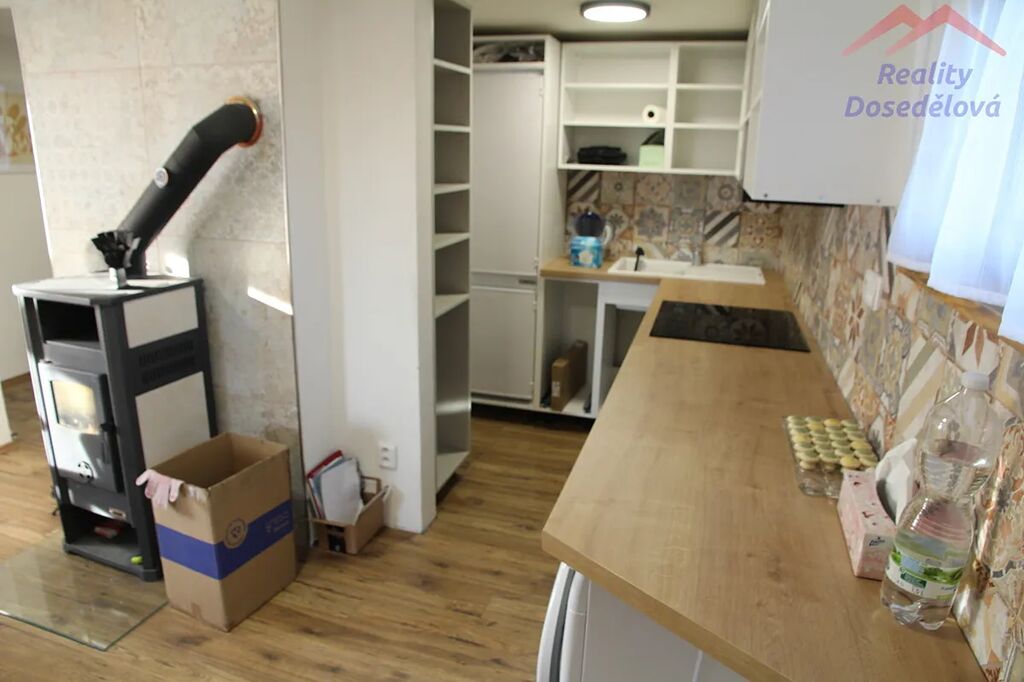 V současné chvíli se ještě dodělává nová kuchyňská linka-instalují dvířka od kuchyňské linky a dodělává se vstupní chodbička. Součástí koupě je i veškeré vybavení chaty, nová krbová kamna i s venkovním bazénem s pískovou filtrací. Nově je i udělána vstupní venkovní terasa 14 m2.