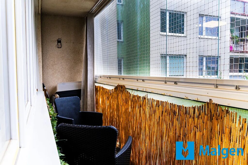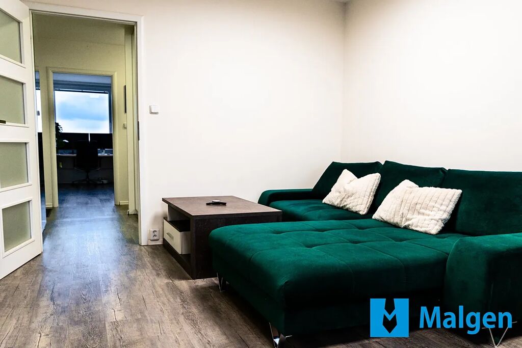 Dispozice bytu zahrnuje prostorný obývací pokoj propojený s moderním kuchyňským koutem včetně spotřebičů, ložnici, další pokoj (aktuálně využívaný jako pracovna), koupelnu s vanou a samostatnou toaletu. Součástí je také zasklená lodžie (7 m²) s klidným výhledem do vnitrobloku se zelení a dětským hřištěm. V bytě je dostatek úložných prostor, včetně vestavěných skříní, a komfort zvyšuje i elektrické podlahové vytápění v koupelně a na toaletě. Dle dohody je možné ponechat i zánovní vybavení a nábytek.