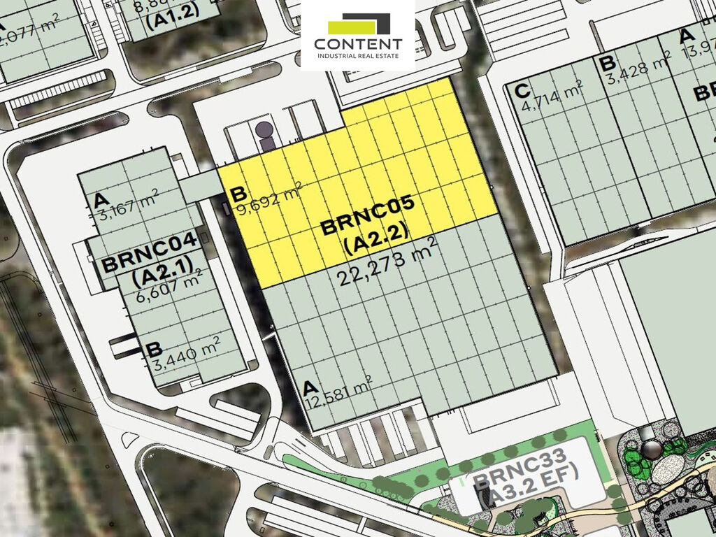 Pronájem novostavby skladu, výrobních prostor 9692 m² Brno - Slatina.