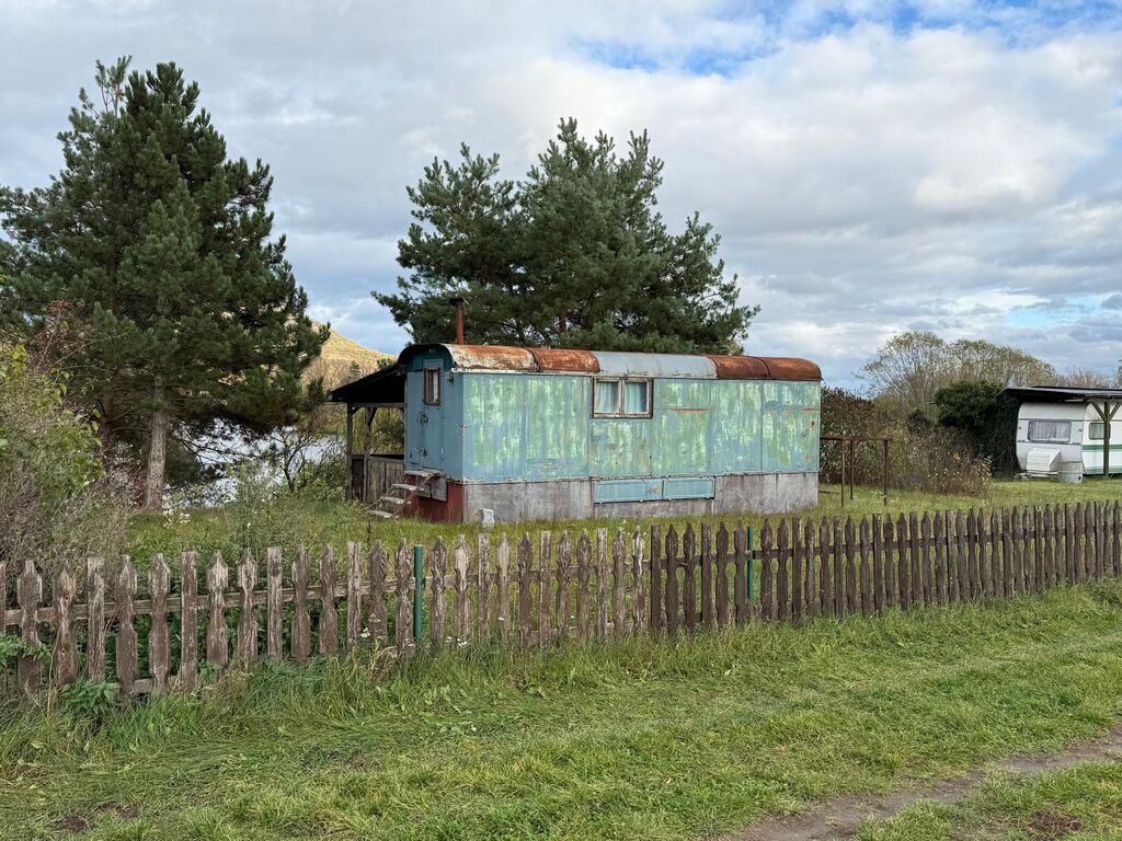 K zahrádce se dostanete po obecním pozemku. Ten je majiteli nemovitosti od obce pronajímán za cenu 6 500 Kč / rok. Pozemek je terasovitý o vícero úrovních. Na jedné úrovni najdete rybářskou chatu a na druhé potom maringotku. Dole u vody je dostatek prostoru pro volnočasové rybaření. Na pozemku naleznete také suchou toaletu. Součástí prodeje je veškeré vybavení, a to včetně menší loďky.