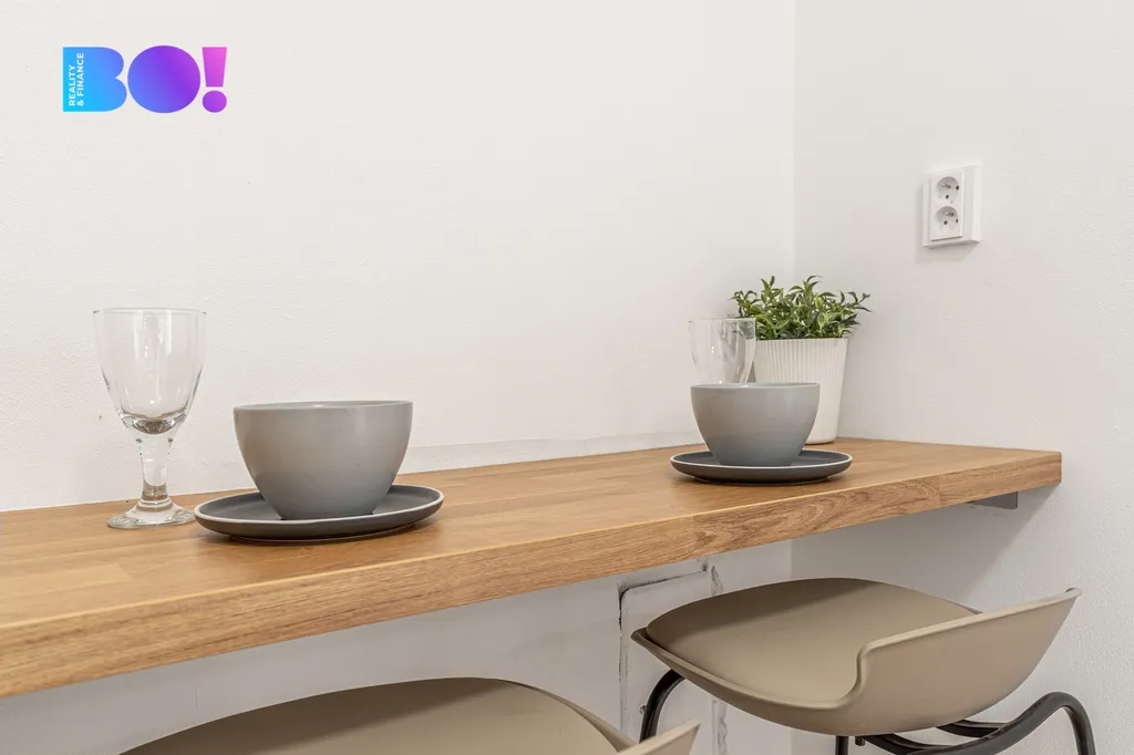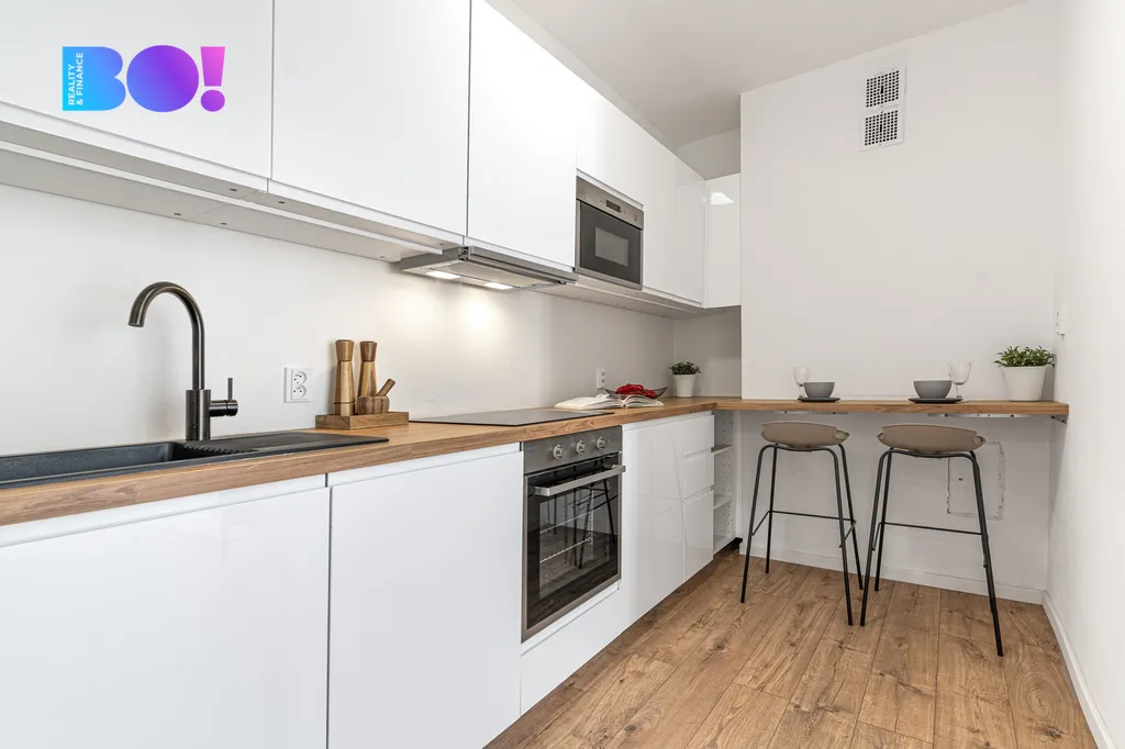 Byt je nezařízený - možnost doladit bydlení dle vlastního stylu, nová kuchyňská linka, plovoucí podlahy, myčka, pračka ve zrekonstruované koupelně. Byt je vytápěný elektrickými úspornými radiátory. K bytu náleží terasa k příjemnému posezení o výměře 12 m², která je vedena jako zimní a dvě parkovací místa.