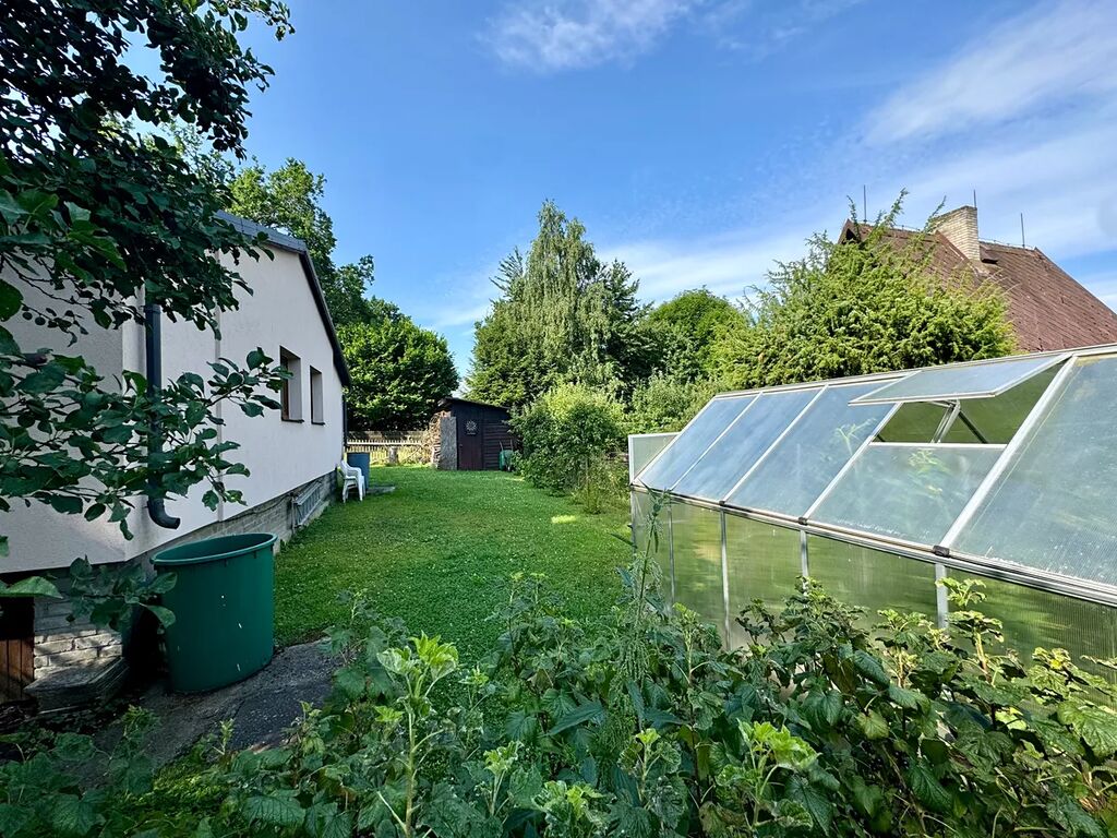 K nemovitosti náleží pozemek o rozloze 404 m², kde se nachází i kolna, skleník, ohniště, altán a který skýtá dostatek prostoru pro relaxaci, zahradní činnosti nebo třeba pro instalaci bazénu.