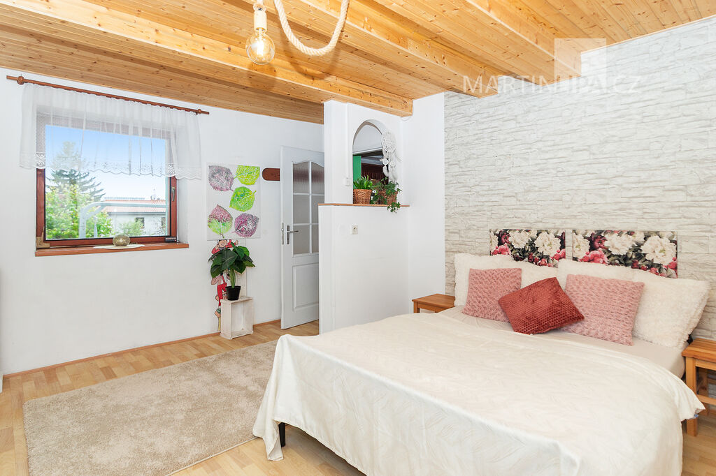 Dům je starší poctivý kus. Plně obyvatelný, místy s trochu unaveným make-upem, ale přitom upřímně připravený na další kapitolu. Rozhodně by vás neměl nijak překvapovat – a když, tak spíš pozitivně. V roce 2016 dostal novou střechu včetně krovu s krytinou Bramac, topí plynovým kotlem Vaillant (2002) a část oken se měnila v roce 2003. Dispozice 4+1 dává smysl v běžném provozu a pokud by vám to bylo málo, je zde velkrysá půda, přímo stvořená pro vestavbu dalších pokojů. Minimálně dva nebo tři by se tam v pohodě vešly. Střešní okna jsou již nainstalována a na vás by zůstalo jen to vymyslet a dotvořit.