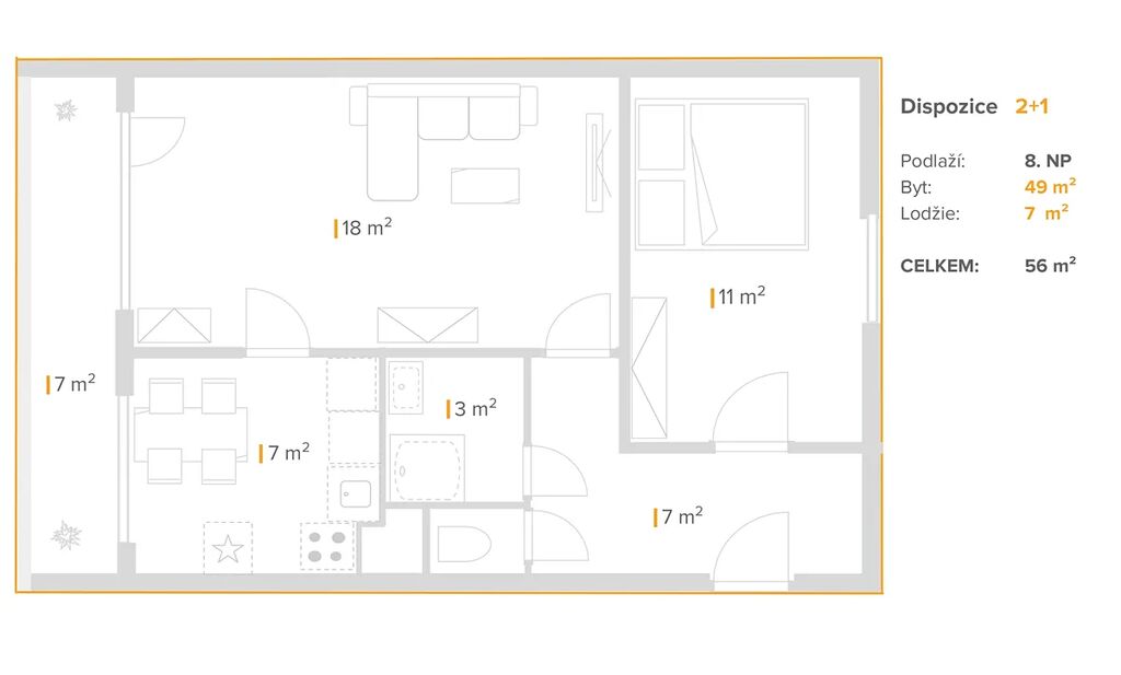 Byt mohu vybavit nábytkem - stůl, postel, gauč a pračku.
