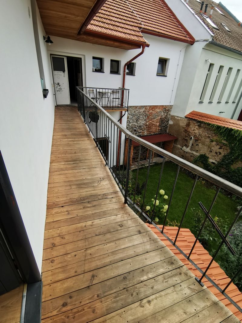 Byt s východní orientací disponuje prostorným obývacím pokojem propojený s kuchyňským koutem. Kuchyňská linka s kameninovým dřezem včetně vestavěných spotřebičů: trouba se sklokermickou varnou deskou se dvěma plotýnkami, digestoř, myčka, pračka a vestavná menší lednička. Dále samostatná ložnice a předsíň. Moderní koupelna se sprchovým koutem, umyvadlem, elektrickým bojlerem, keramickou dlažbou a obklady. Nášlapné vrstvy podlah pokojů jsou plovoucí /laminátové/, dveře původní repasované. Stylová dřevěná okna STANDARD TERMO IV 84 s izolačním trojsklem, které zajišťují odhlučnění a minimální propustnost tepla. Vytápění: sálavé elektrické nástěnné konvektory, ohřev vody boilerem. Přístup k bytu je přes sdílenou pavlač, kterou je možné využívat k posezení. Měsíční platby: 9.000,-Kč + 800,-Kč- /1 os. zálohy na služby ( spotřeba vody, úklid společných prostor, el. společných prostor, správa) + zálohy na el. energii (cca 5.000,-Kč/měs.), které se přepisují na nájemce. Vratná kauce 27.000,-Kč. V těsné blízkosti najdete obchody a služby, ve městě veškerá občanská vybavenost. Velmi vkusný byt připravený k okamžitému užívání. Od 1.2.2026.