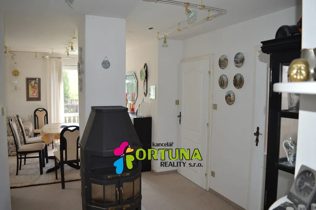 Rodinný dům je podsklepený, v prvním nadzemním podlaží je byt o dispozici 3+1 s vlastní terasou, koupelnou. Byt je vytápěný plynovým kotlem, v obývacím pokoji jsou také krbová kamna.