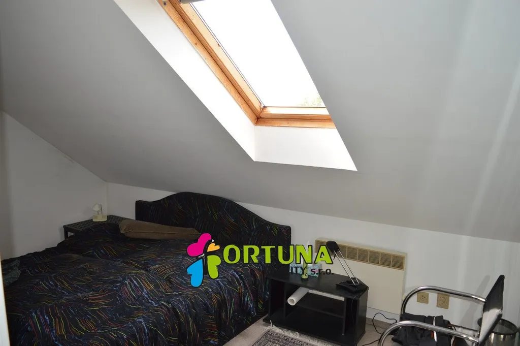 Ze vstupní chodby do domu je přístupný jak byt v přízemí, tak dále po schodech druhý byt v podkroví. V podkrovním bytě jsou tři ložnice, obývací pokoj a koupelna. Byt je vytápěný elektrickými přímotopy. Na podlahách jsou položeny plovoucí podlahy (keram. dlažba pak v koupelně) a částečně koberce.