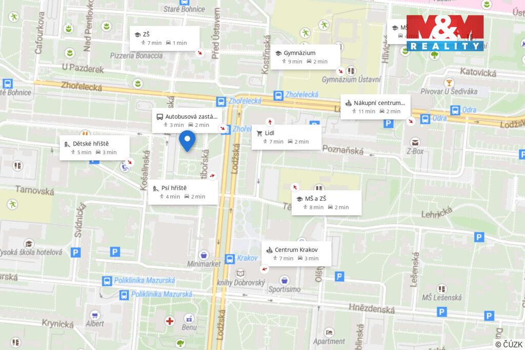 Vše potřebné je v dochozí vzdálenosti, což zajišťuje komfortní bydlení na sídlišti s výbornou občanskou vybaveností. Velkým bonusem je parkování bez modrých zón.