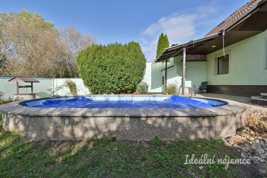 K dlouhodobému podnájmu nabízíme rodinný dům o dispozici 4+kk v klidné obci Ponětovice. Dům o celkové podlahové ploše 180 m² je situován na pozemku se zahradou 550 m². K domu patří také s terasa, udírnou, skleník a bazéne.