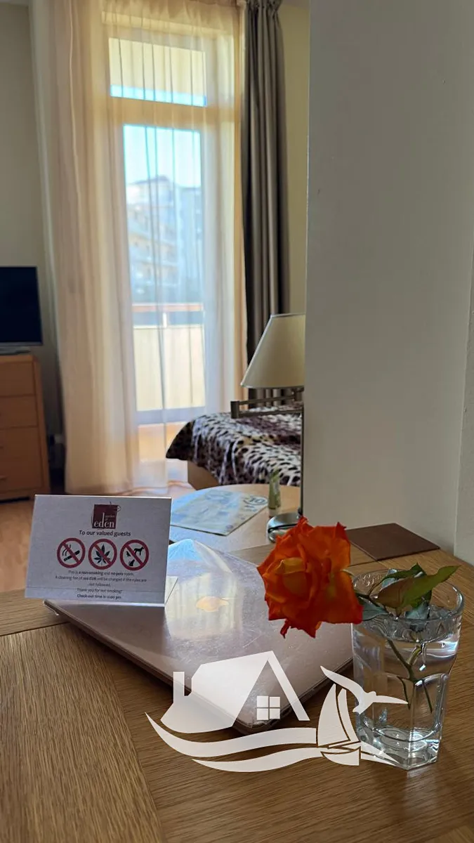 Představte si ráno, kdy otevřete balkónové dveře a ucítíte jemný vánek od moře. Slunce se odráží od klidné hladiny a celé pobřeží patří jen vám. Zvuk vln se mísí s vůní borovic a vy máte před sebou den plný lehkosti, ticha a středomořského klidu. Právě takovou atmosféru nabízí toto útulné studio v luxusním komplexu Garden of Eden v bulharském Sveti Vlasu – místě, kde se harmonicky propojuje příroda, komfort a mořská elegance.